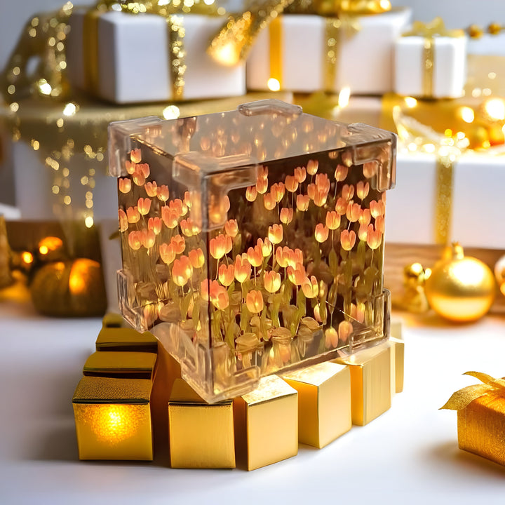 🌸 Tulip Cube Mirror Lamp – Light Up Your Space with Elegance